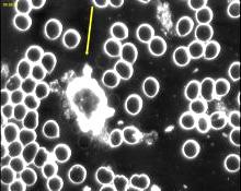 The red cells membranes are ghosting (exploding) due to their weakened state. Red cells are disappearing while being watched during live blood analysis. |